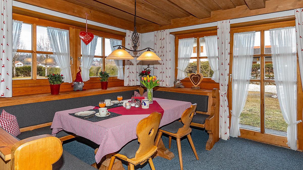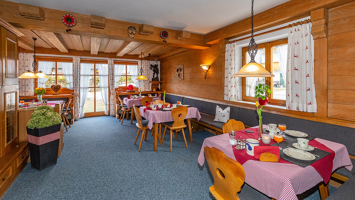 In unserem gemütlichen Frühstücks- und Aufenthaltsraum genießen Sie jeden Morgen ein erweitertes Frühstück.
