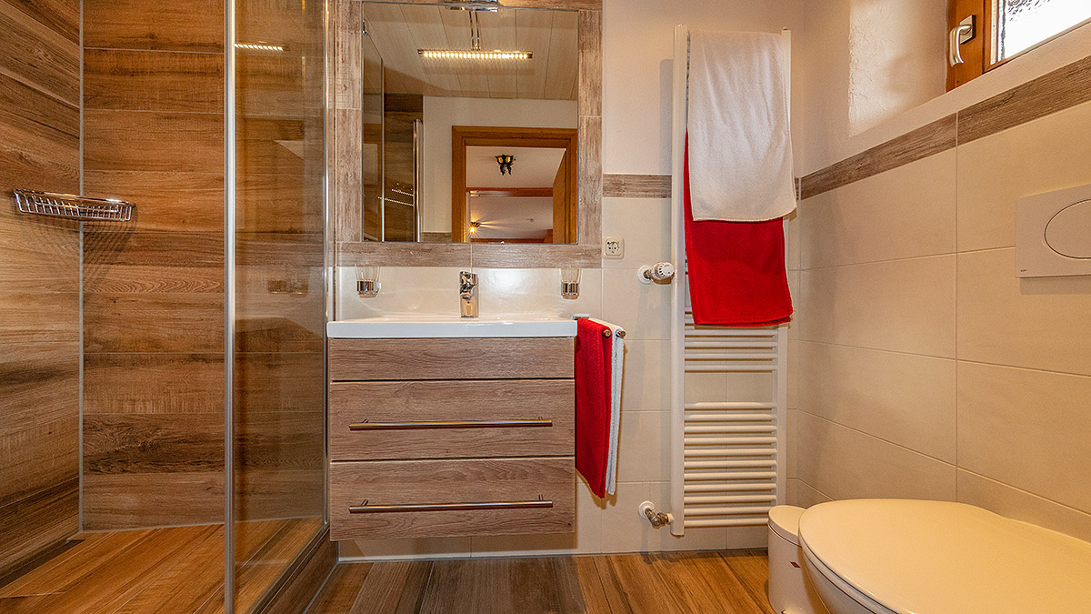 Es ist ausgestattet mit einem möblierten Süd/Ostbalkon (Blick auf Karwendel-und Wettersteingebirge mit Zugspitzmassiv), Sitzgruppe, Couch (ausziehbar), DU/WC, Fön, Kabel-Flachbild-TV, Radio/CD, Safe, Wasserkocher und kostenlosem WLAN.