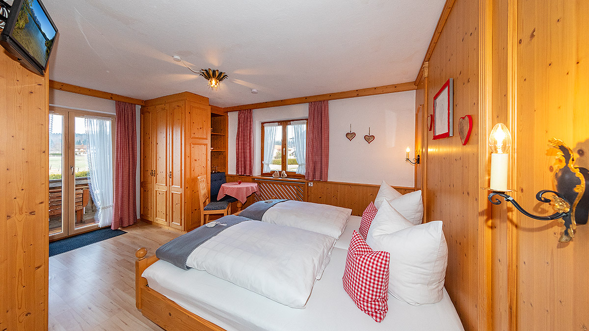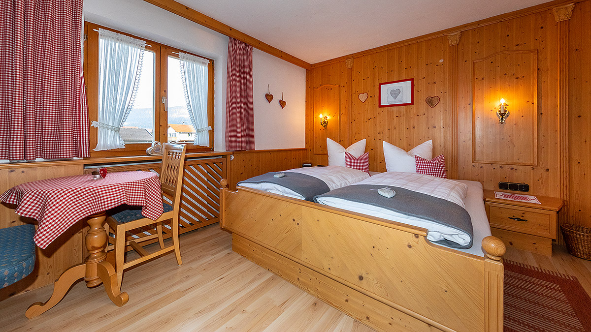 Das Doppelzimmer befindet sich im 1. Stock mit möblierten Südbalkon